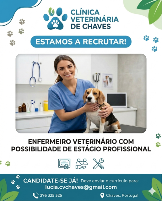 A Clínica Veterinária de Chaves encontra-se a recrutar um Enfermeiro Veterinário com possibilidade de estágio profissional.